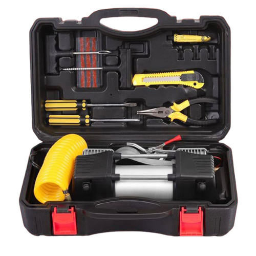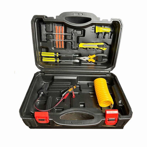 قلب تپنده این کمپرسور، موتور الکتریکی 12 ولتی است که توسط فندکی خودرو تغذیه میشود. این موتور با توان مناسب خود، فشار و دبی هوای کافی را تولید کرده و با سرعت بالا تایر خودرو را باد میکند.