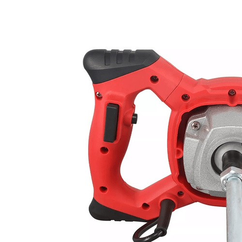 یکی از مزایای قابل توجه این همزن، وجود پره (میله) همزن با کیفیت است. این میله معمولاً از جنس فولاد مقاوم ساخته شده و در برابر فشارهای جانبی و خوردگی مقاوم است. طراحی مارپیچ این پرهها باعث میشود که مواد به شکل یکنواخت و بدون حباب هوا مخلوط شوند. این موضوع برای کارهایی مانند آمادهسازی ملات یا رزین، که یکنواختی ترکیب اهمیت بالایی دارد، بسیار مهم است. طول پره نیز به اندازهای است که بهراحتی در سطلهای استاندارد کارگاهی قرار میگیرد و مخلوطکردن حجم بالای مواد را تسهیل میکند.