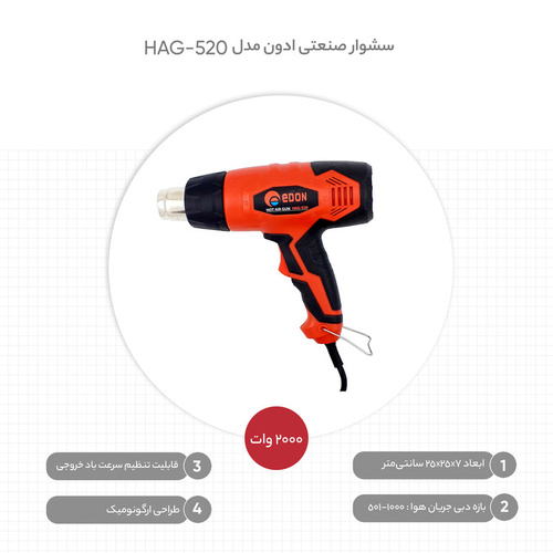 سشوار صنعتی ادون مدل HAG520 قدرت 2000 وات