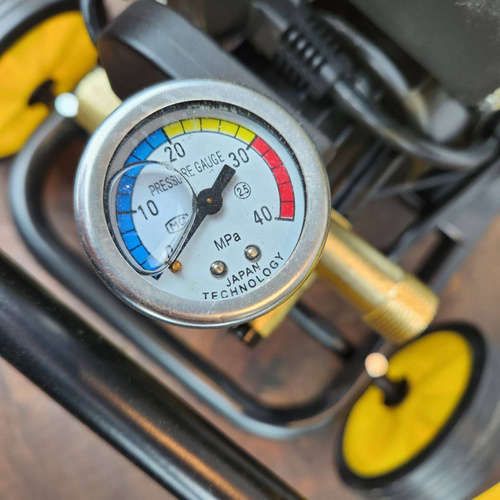 دستگاه از برق شهری 220–240 ولت و فرکانس 50/60 هرتز تغذیه میشود و توان اسمی موتور آن حدود 3٫98 کیلووات (معادل نزدیک به 4 هزار وات) است. این توان بالای موتور باعث میشود دستگاه قابلیت تولید فشار یکنواخت و قوی برای مدت طولانی داشته باشد.