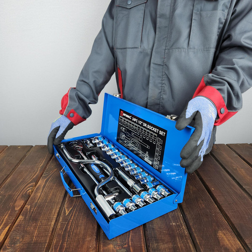سایر توضیحات- دارای 18 عدد بکس درایو 1/2 اینچ در سایزهای 8، 9؛ 10، 11، 12، 13، 14، 15، 16، 17، 19، 20، 21، 22، 24، 27، 30 و 32 میلیمتر - دارای یک عدد آچار هندلی با کیفیت - دارای یک عدد لقلقه - دارای یک عدد کشویی 25 سانتیمتر - دارای دو عدد کمک بکس کوتاه و بلند - دارای یک عدد جغجغه 1/2 اینچ با کیفیت - دارای کیف فلزی - دارای دو عدد کمک بکس 1/2 12.5 سانتیمتر و 25 سانتیمتر