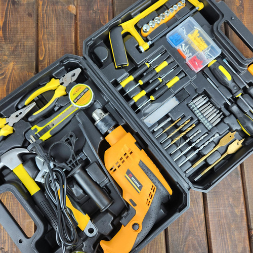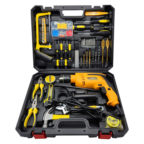 کیت دریل چکشی اینتیمکس یکی از مجموعه هایی می باشد که بیشتر نیاز های کاربران خود را برآورده کرده است این مجموعه ابزار برای کاربری های نیمه صنعتی، تجاری، خانگی بسیار مناسب است . دریل چکشی قرار داده شده در این مجموعه دارای موتور قدرتمند 1200 واتی قرار داده شده و در این دریل سرعت چرخش آزاد 3000-0 دور در دقیقه را به چرخش در می آورد ، همچنین قطر سه نظام این دریل 1.5 الی 13 میلیمتر می باشد. که از ویژگی های منحصر آن می توان به کنترل سرعت (دیمر) گردش با میزان فشار به شستی، حداکثر توان سوراخ کاری در فلز 13 میلی متر و در مصالح 13 میلی متر و در چوب 30 میلی متر ، دسته کمکی با قابلیت چرخش 360 درجه اشاره کرد . این مجموعه شامل کلیه ابزارهای مصرفی شامل؛ آچار فرانسه ، انبردست، دمباریک، چکش، بکس تک سایز 4 تا 13، متر 3 متری، پیچ گوشتی دوسو و چهارسو سایز بزرگ، پیچ گوشتی نوک خور،، مته آهن سایز 4 و 5 و 6، مته دیوار سایز 5 ،6 و 4، مته برگی سایز 16و 20، 9 عدد نوک پیچ گوشتی،تبدیل نوک پیچ گوشتی به بکس چسب برق، کاتر، فازمتر دیجیتال، آچار سه نظام،5 عدد تیغ کاتر، دو سایز پیچ گوشتی موبایلی دو سو و دو سایز پیچ گوشتی موبایلی چهارسو،کمان اره چوب و فلز، مجموعه سایزبندی پیچ و رولپلاک می باشد .